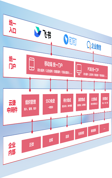 对协作平台提供支持服务,,支持企业应用与协作平台对接,,,包含组织同步、、、、消息集成、、、待办集成等。。支持目前主流的协作平台:钉钉、、企微和飞书。。。